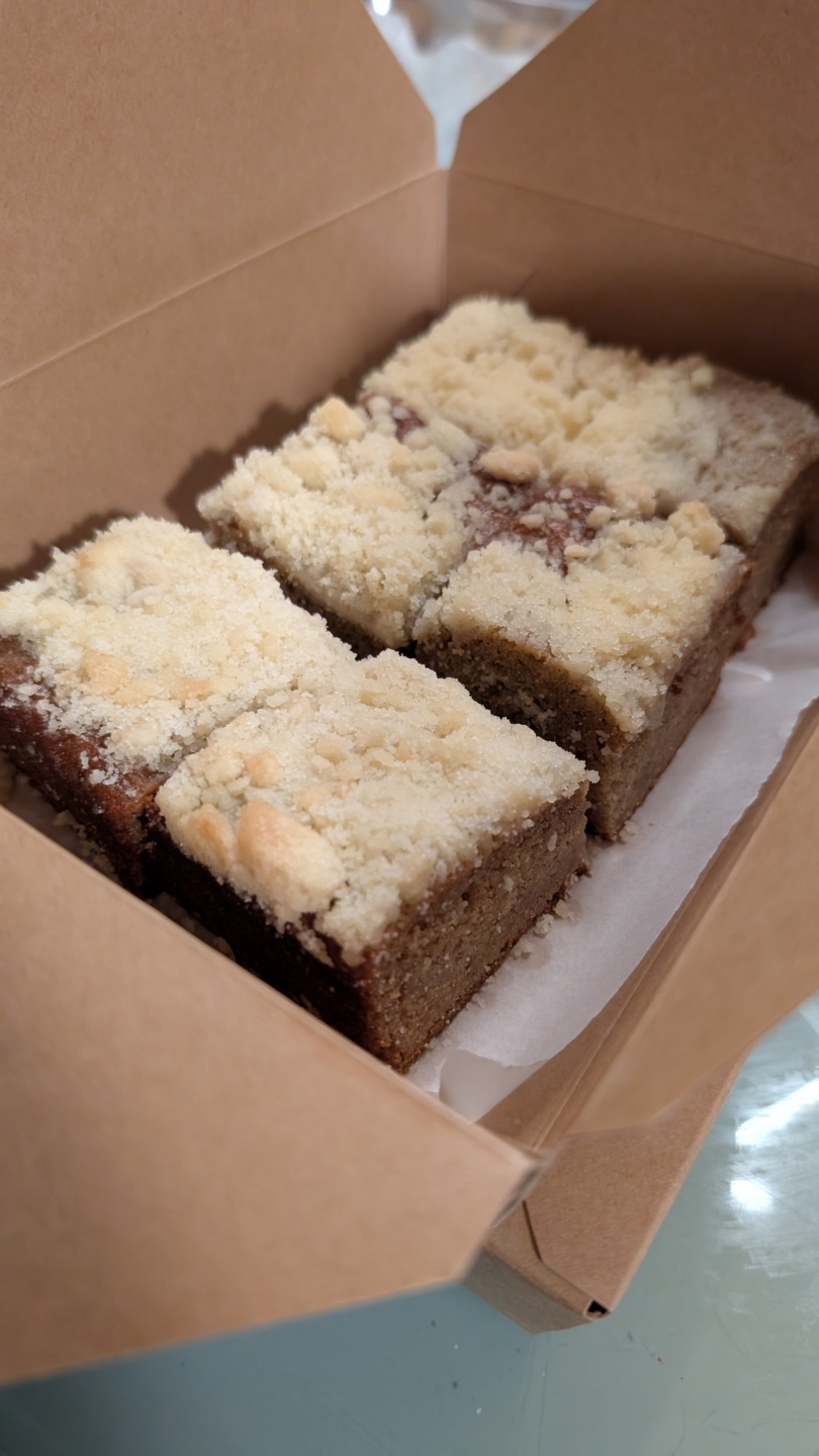 Streusel-topped coffee and breakfast cakes (BC sweet cherry, apple, pear banana spice)