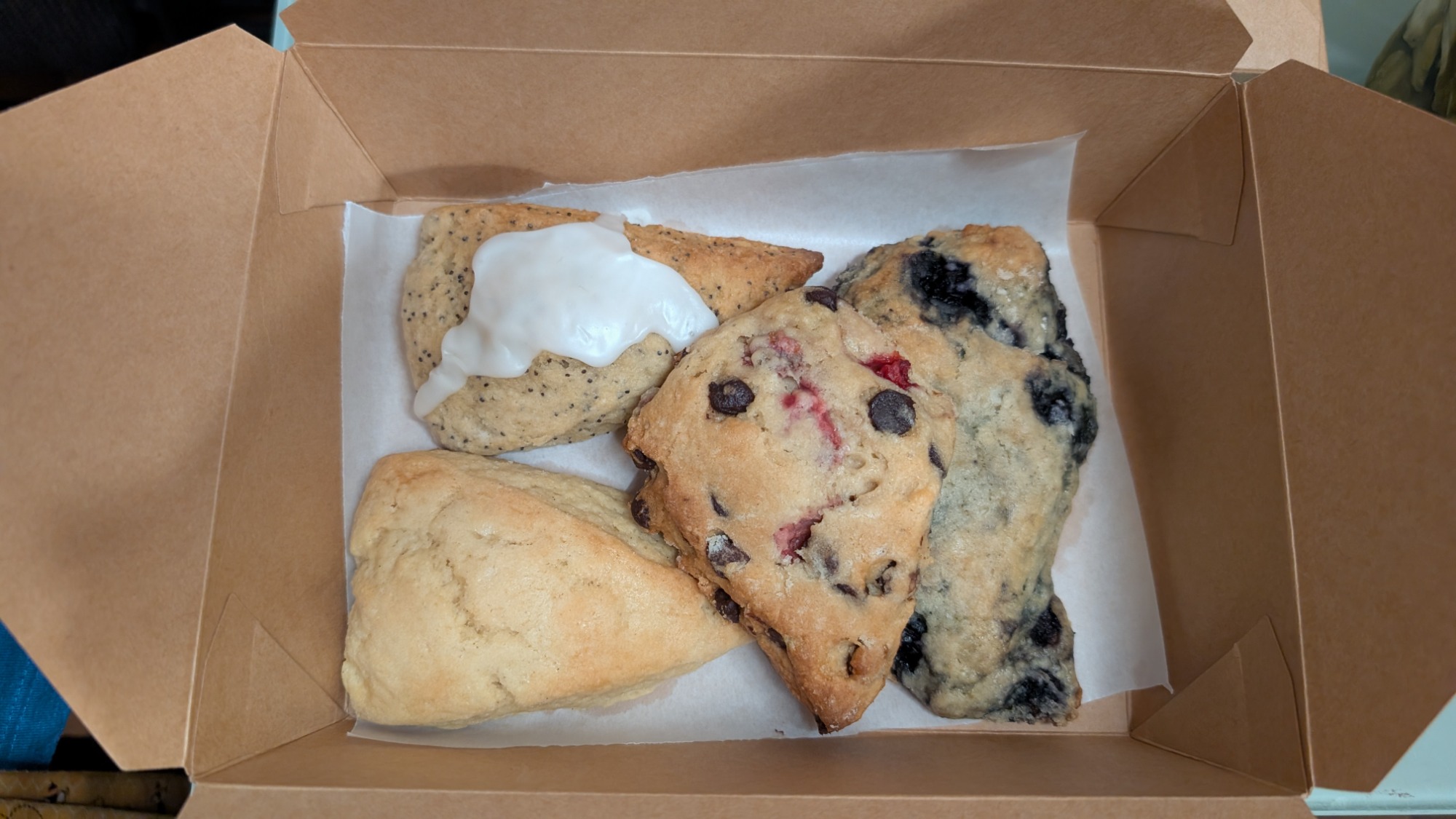 OG vanilla bean, savoury mushroom & cheese (ask for current availability - usually based on mushroom of the week), lemon poppy seed, chocolate chip, blueberry lemon, pumpkin spice